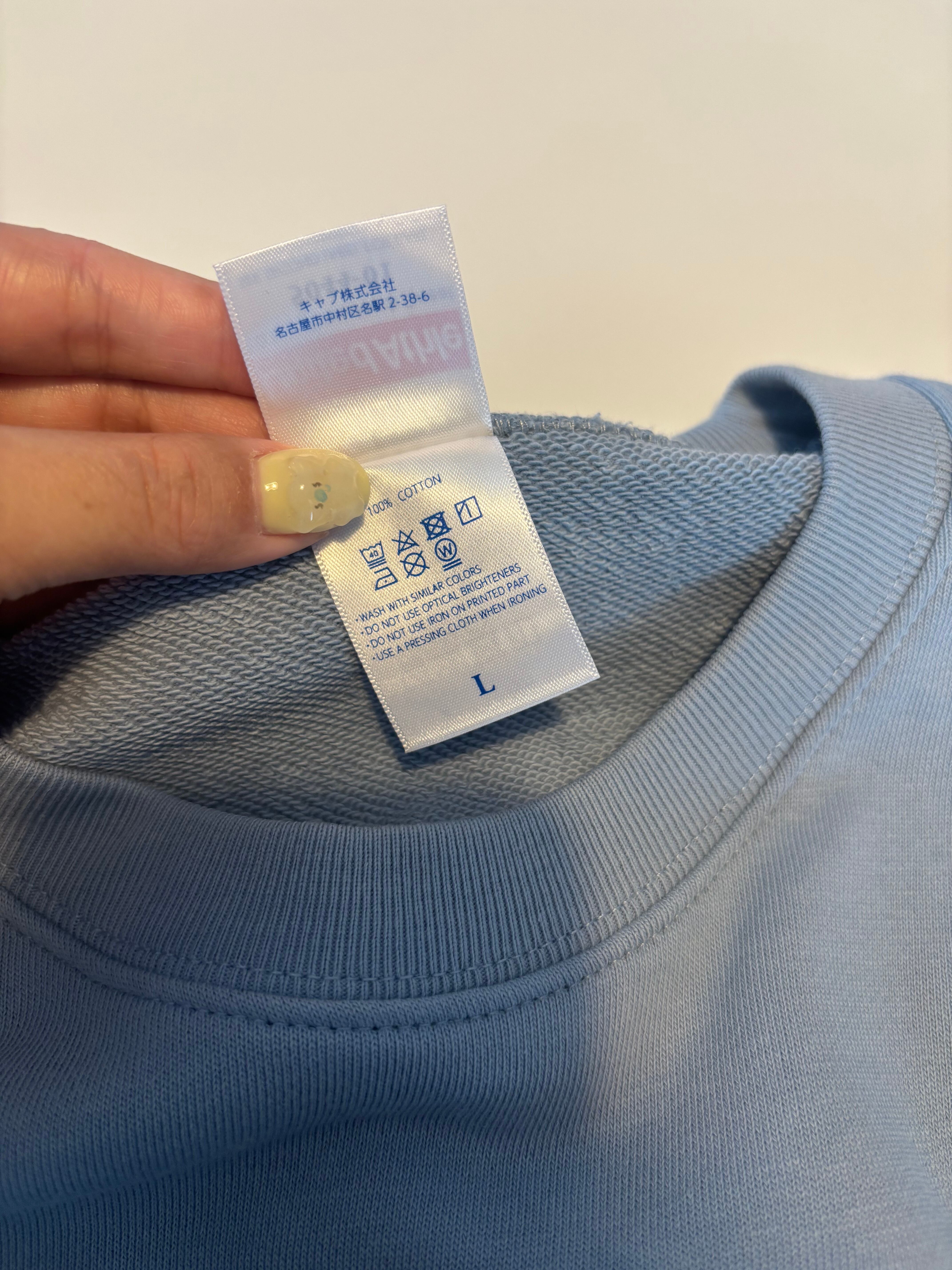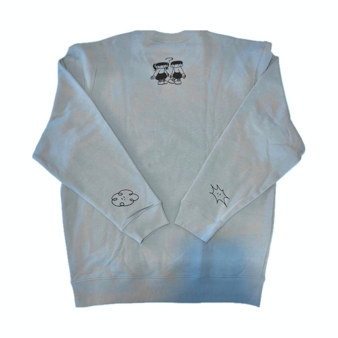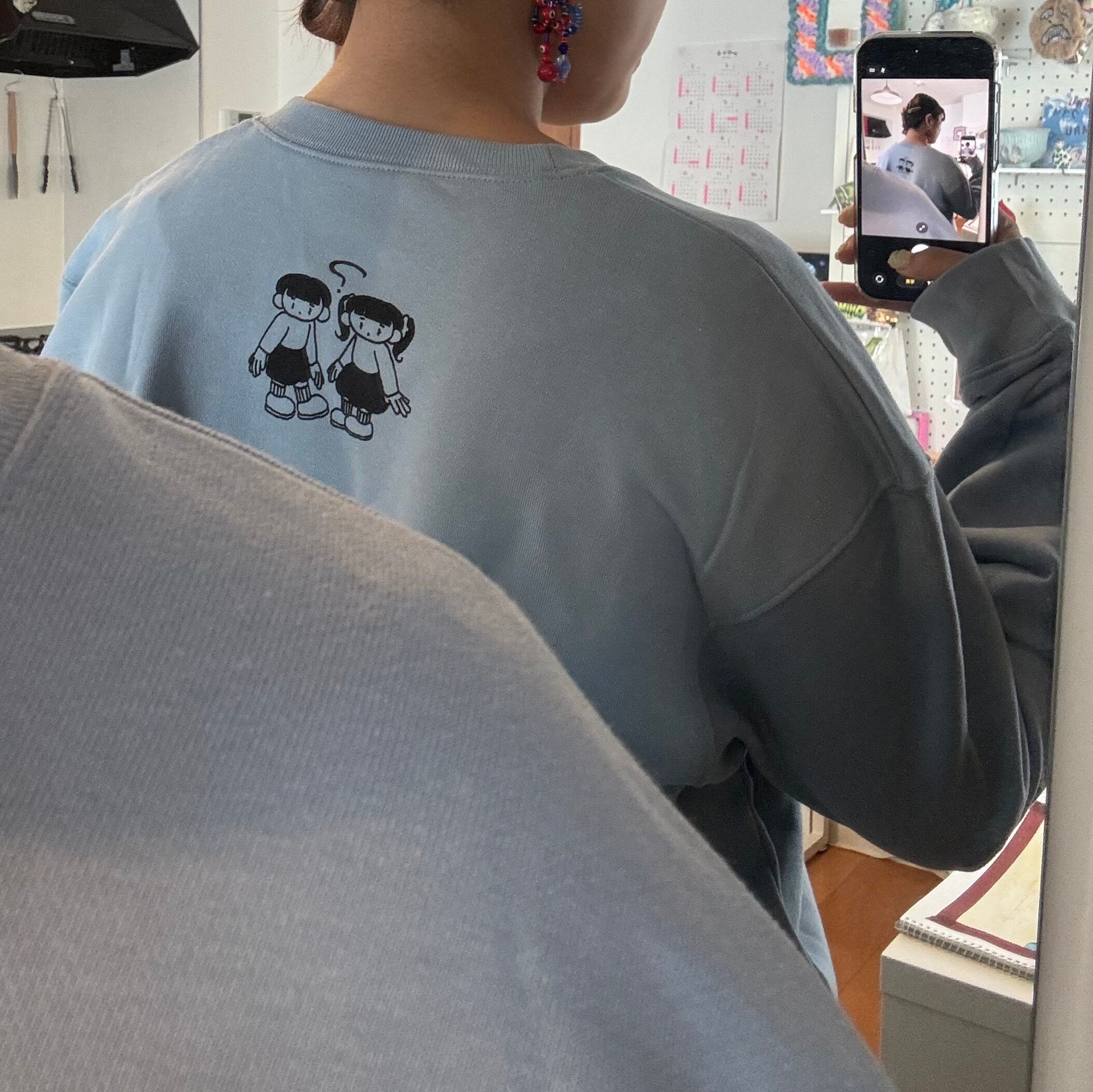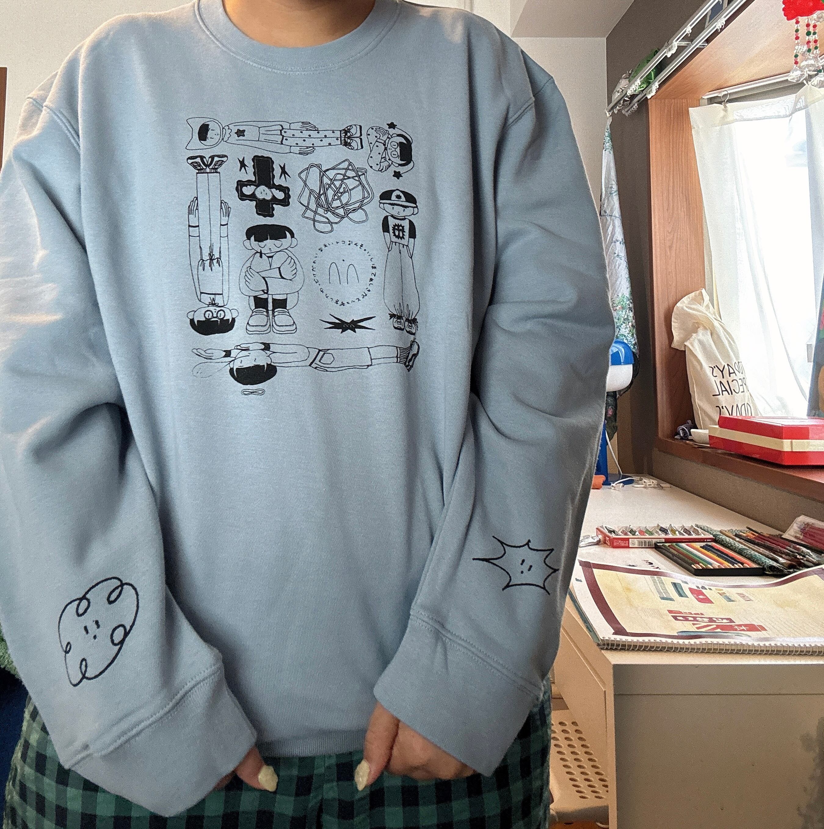 くすみブルーのキュートなスウェットにシルクスクリーンを施しました◯