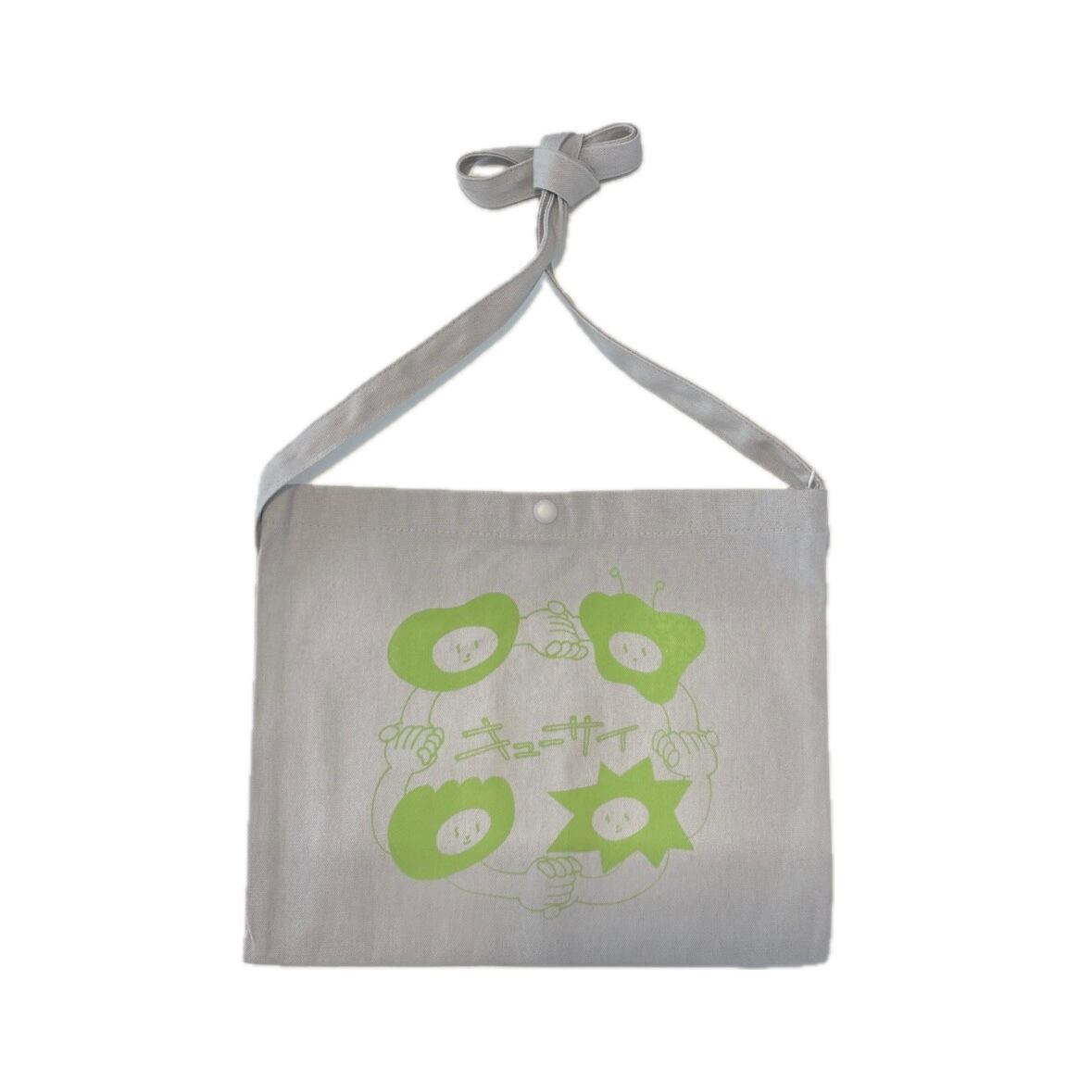 グレーのシンプルなサコッシュにシルクスクリーンを施しました◯