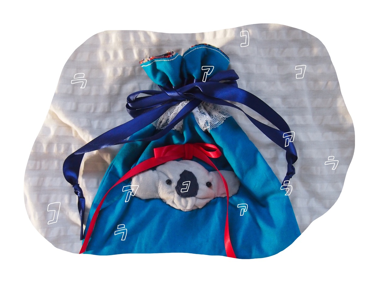 リボンでおめかししたコアラちゃんが貴方の大切なモノを包みこむ巾着です。
