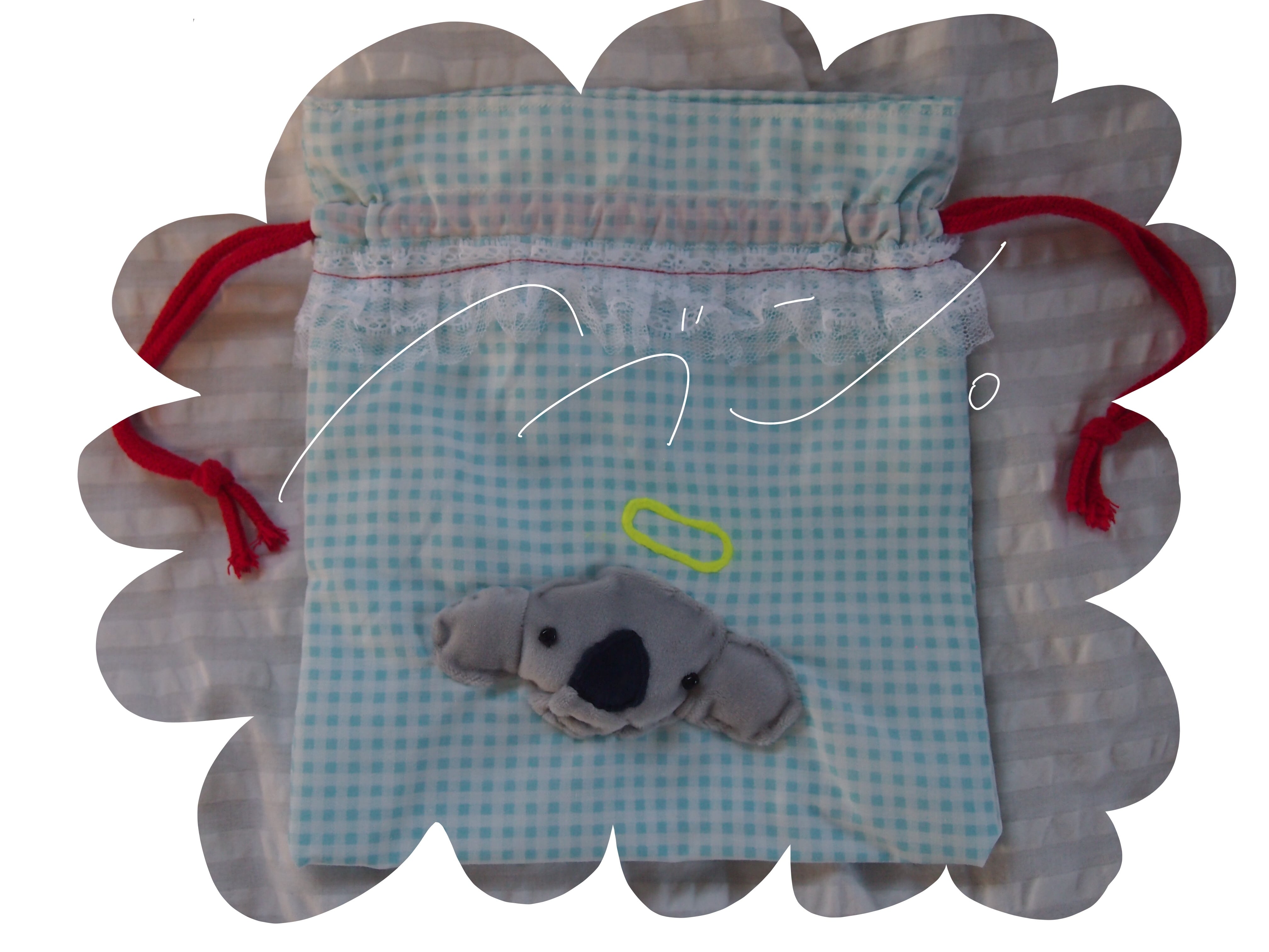 エンジェルコアラが貴方の大切なモノを包みこむ巾着です。