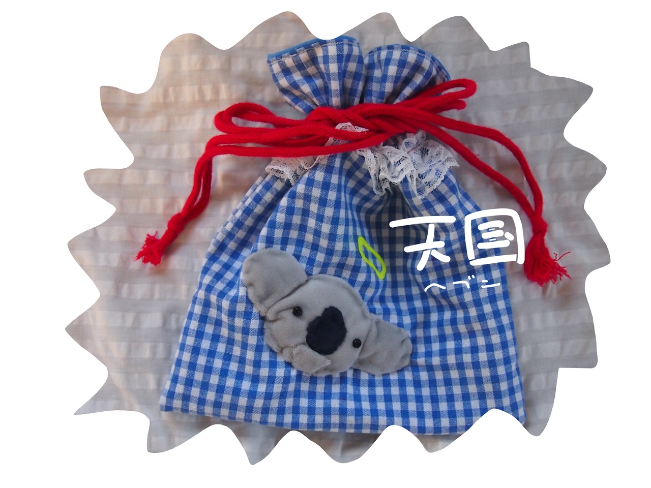 エンジェルコアラが貴方の大切なモノを包みこむ巾着です。